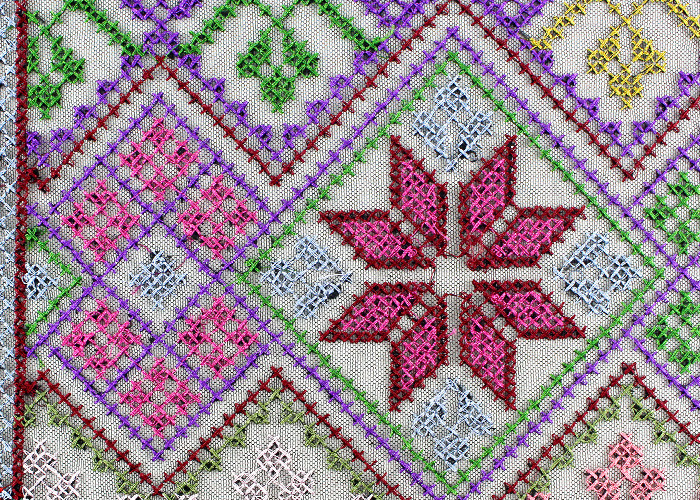 قماش دانتيل مطرز بغرز متقاطعة متعدد الألوان مخصص لما يصل إلى 12 لونًا يتم تصنيعه بواسطة