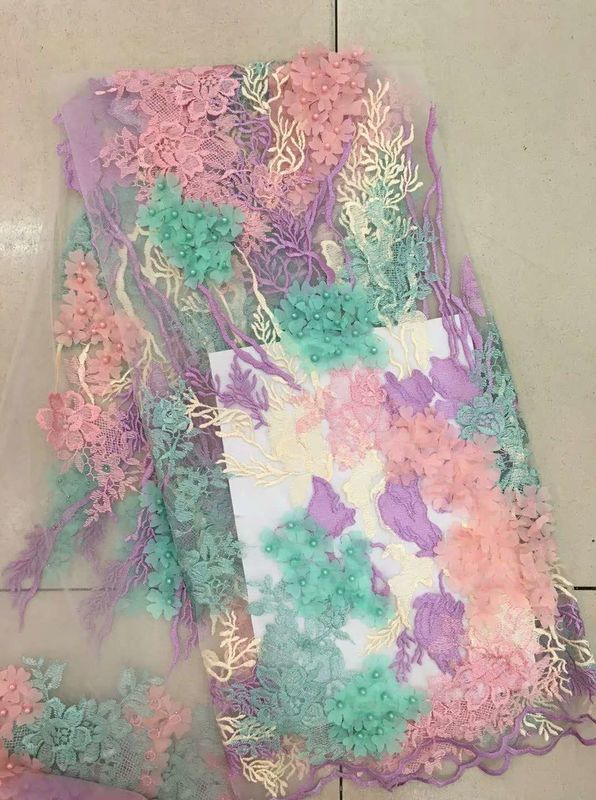 نسيج دانتيل مطرز ثلاثي الأبعاد، قماش مطرز بالزهور متعدد الألوان للتنانير تحظى بشعبية في جميع أنحاء العالم أكثر من 30 دولة