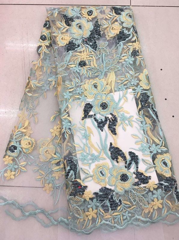أقمشة دانتيل الترتر، قماش دانتيل فستان مطرز بالزهور متعدد الألوان للثوب